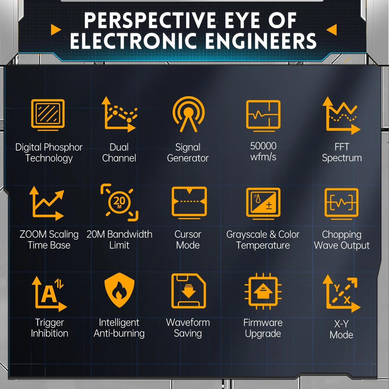 FNIRSI® DPOX180H 2-IN-1 Dual Channel 180MHz 500MS/s Digital Phosphor Oscilloscope Signal Generator